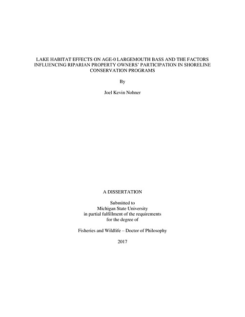 Lake habitat effects on age-0 largemouth bass and the factors influencing riparian property owners' participation in shoreline conservation programs