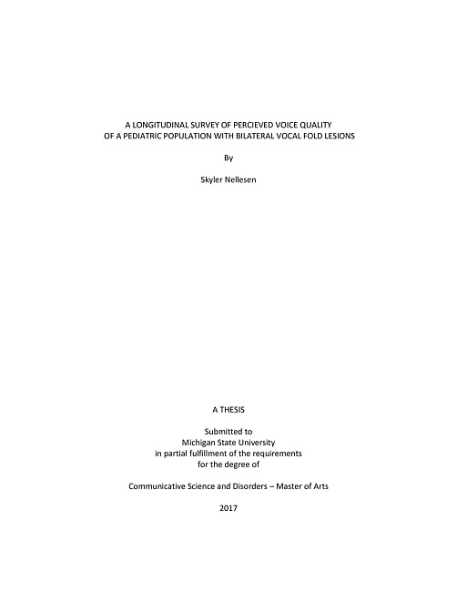 A longitudinal survey of percieved voice quality of a pediatric population with bilateral vocal fold lesion