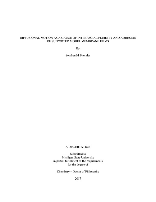 Diffusional motion as a gauge of interfacial fluidity and adhesion of supported model membrane films
