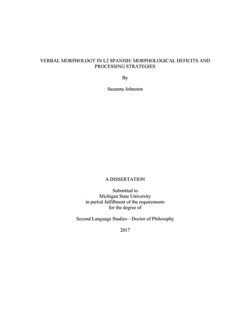 Verbal morphology in L2 Spanish : morphological deficits and processing strategies