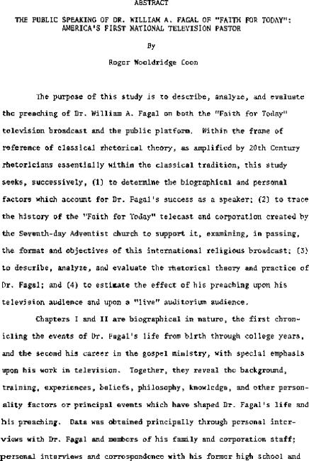 The public speaking of Dr. William A. Fagal of "Faith for today" : America's first national television pastor