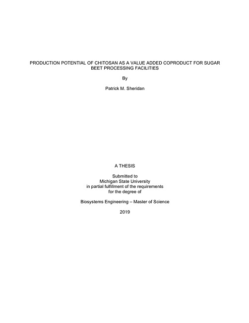 Production potential of chitosan as a value added coproduct for sugar beet processing facilities