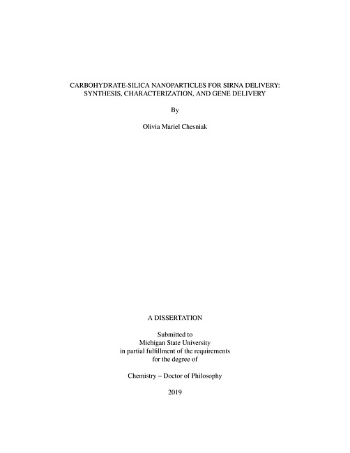 Carbohydrate-silica nanoparticles for sirna delivery : synthesis, characterization, and gene delivery