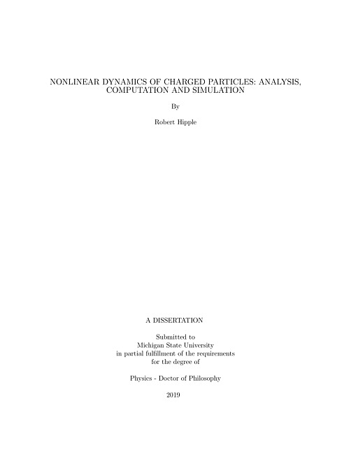 Nonlinear Dynamics of Charged Particles : Analysis, Computation and Simulation
