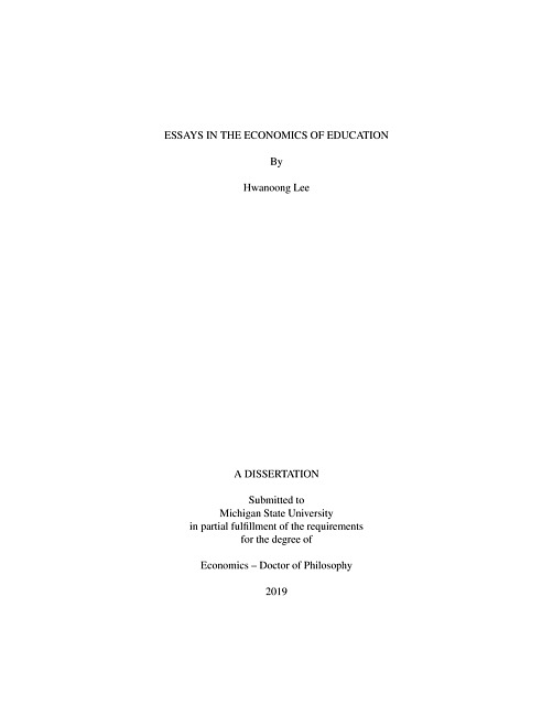 "This dissertation comprises three essays on the Economics of Education. Its ultimate focus is to understand how different agents in the education market respond to releasing information about teacher and school performance and how public interventions influence human capital accumulation. The first essay "The Effect of Releasing Teacher Performance Information to Schools: Teachers' Response and Student Achievement" examines the effects of releasing teacher value-added (VA) information on student performance in two settings; in the first, VA data was released to all potential employers within the district, while in the second, only the current employer received the data. I find that student achievement increased only in the district where the VA scores were provided to all potential employers. These effects were driven solely by improved performance among ex-ante less-effective teachers; the null effects in the other setting, however, were driven by moderate declines in performance among ex-ante highly-effective teachers and small improvements among less-effective teachers. These results highlight the importance of understanding how the design features of VA disclosure translate into the productivity of teachers. The second essay "The Role of Credible Threats and School Competition within School Accountability Systems: Evidence from Focus Schools in Michigan" studies the impact of receiving accountability labels on the student achievement distribution under No Child Left Behind (NCLB) waivers. Using a sharp regression discontinuity (RD) design, I examine the achievement effects of Focus (schools with the largest achievement gaps) labels and find that schools receiving the Focus label improved the performance of low-achieving students relative to their barely non-Focus counterparts, and they did so without hurting high-achieving students. The positive achievement effects for Focus schools were entirely driven by Title 1 Focus schools that faced financial sanctions associated with being labeled the following year. There is no evidence of an achievement effect associated with the Priority label. Next, I examine heterogeneous effects by looking at the number of alternative nearby schooling options. I find that when schools are exposed to a competitive choice environment, receiving the Focus label increased math test scores across the scoring distribution, while schools located in an uncompetitive choice environment improved the test scores of low achievers only. This evidence may suggest the importance of incorporating credible sanctions and school choice options into the school accountability system to maximize the effectiveness of the system on student achievement. Finally, the third essay "The Effects of School Accountability Systems Under NCLB Waiver: Evidence from Priority Schools in Michigan" investigates the impact of receiving Priority labels on the student achievement distribution under No Child Left Behind (NCLB) waivers. Using a sharp regression discontinuity (RD) design, I examine the achievement effects of the Priority (schools with the lowest performance) label and find no evidence of an achievement effect associated with the Priority label. Next, I examine whether assigning the Priority label induced the changes in the composition of students. I define several key measures of student composition and find no evidence that the Priority designation influenced the student composition of schools."--Pages ii-iii.