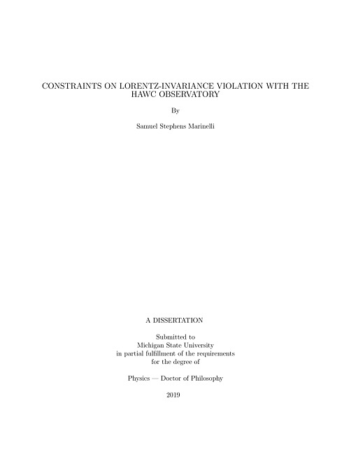 "Lorentz invariance is one of the fundamental symmetries assumed by the Standard Model (SM) of particle physics. However, many extensions to the SM allow or predict Lorentz-invariance violation (LIV), in which this symmetry is either spontaneously broken or is only approximately valid at low energies. Under models in which LIV occurs in the photon sector, photon decay to electron/positron pair becomes allowed at sufficiently high energies. Astrophysical gamma (gamma) rays propagate over sufficient distances before reaching Earth that very nearly all of them should decay above the energy at which the decay becomes allowed. The detection of high-energy photons can therefore be used to constrain such models. The High-Altitude Water-Cherenkov (HAWC) observatory is a gamma-ray telescope located on the Sierra Negra volcano in the state of Puebla, Mexico. The detector consists of 300 water-filled tanks instrumented with four photomultiplier tubes each, which detect the Cherenkov light produced by charged particles in extensive air showers initiated by TeV cosmic gamma rays. This thesis presents an analysis of high-energy emission from several HAWC gamma-ray sources and sets new constraints on LIV-induced photon decay. This is done using a new algorithm for estimating the energies of gamma rays detected by HAWC, utilizing a neural network (NN) trained on Monte Carlo (MC) simulations of the detector. The NN uses a multilayer perceptron architecture and maps several geometric features of the air shower to an estimate of the primary photon's energy. HAWC's high-energy sensitivity combined with its improved energy resolution using the NN allows an LIV-induced cutoff in gamma-ray spectra below 209 TeV to be ruled out with 95% confidence. This corresponds to limits on the quantum-gravity energy scale of 8.74 x 1030 or 4.27 x 1022 eV for LIV perturbing the photon dispersion relation at first or second order respectively. These limits constitute a new best constraint on photon-sector LIV."--Pages ii-iii.
