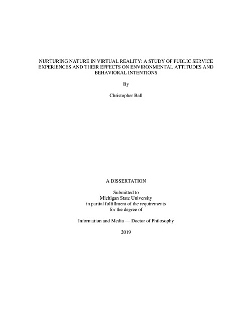 Nurturing nature in virtual reality : a study of public service experiences and their effects on environmental attitudes and behavioral intentions