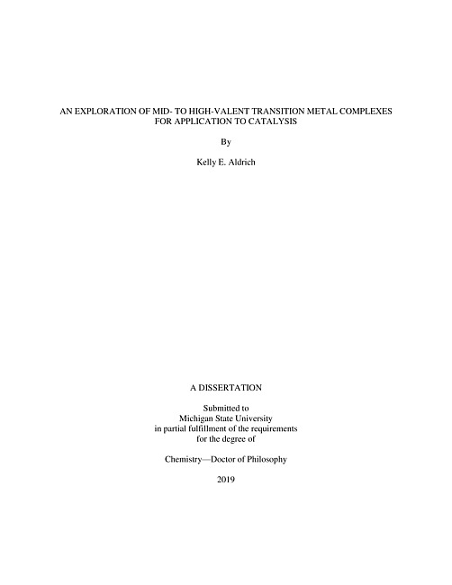 An exploration of mid- to high-valent transition metal complexes for application to catalysis