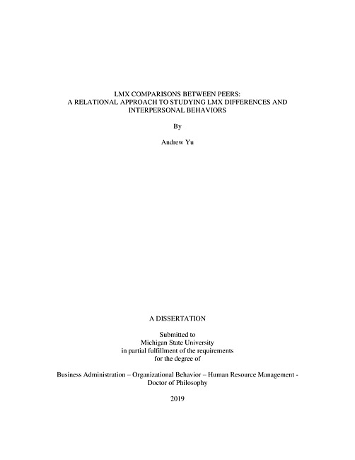 LMX comparisons between peers : a relational approach to studying LMX differences and interpersonal behaviors