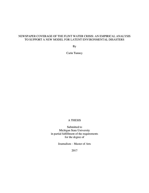 Newspaper coverage of the Flint Water Crisis : an empirical analysis to support a new model for latent environmental disasters