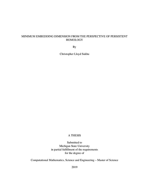 "We investigate the use of 1-dimensional persistence diagrams to determine minimum embedding dimension. In particular, we test the claim that persistence diagrams look qualitatively the same once the correct dimension is reached. In some cases, this appears to not be true so we turn to a quantitative measure, the bottleneck distance, to see if the persistence diagrams are close once the minimum embedding dimension is attained. In some instances, we see that the persistence diagrams fail to converge experimentally under the bottleneck distance. The main issue appears to be that it is difficult to explicitly characterize the persistent homology of delay embeddings of arbitrary time series. Instead we restrict to periodic time series where there exists such an explicit characterization. We apply Fourier analysis to see that that number of peaks in the frequency spectrum of a delay embedded time series is related to the minimum embedding dimension. Moreover, we give a method to filter out less significant peaks while not altering the persistent homology much, with respect to the bottleneck distance."--Page ii.
