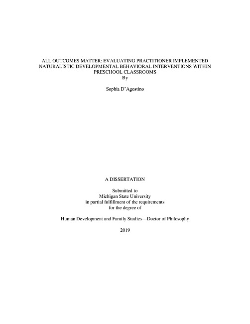 All outcomes matter : evaluating practitioner implemented naturalistic developmental behavioral interventions within preschool classrooms