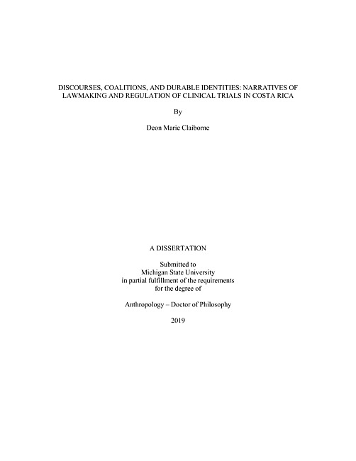 Discourses, coalitions, and durable identities : narratives of lawmaking and regulation of clinical trials in Costa Rica
