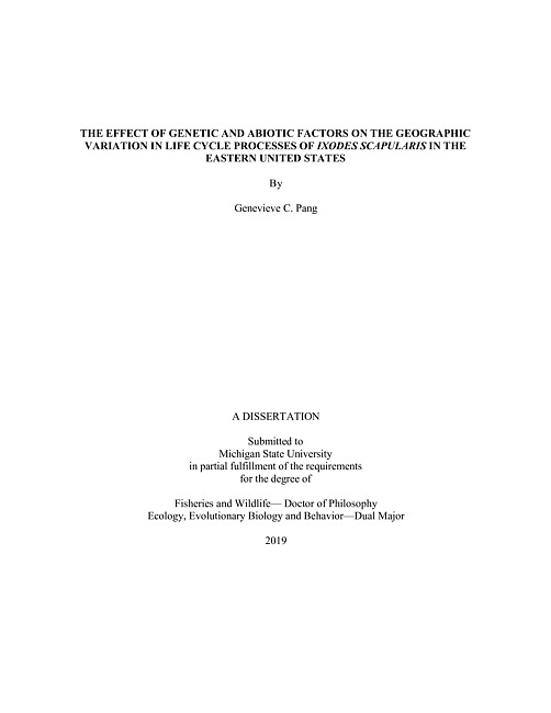 THE EFFECT OF GENETIC AND ABIOTIC FACTORS ON THE GEOGRAPHIC VARIATION IN LIFE CYCLE PROCESSES OF IXODES SCAPULARIS IN THE EASTERN UNITED STATES