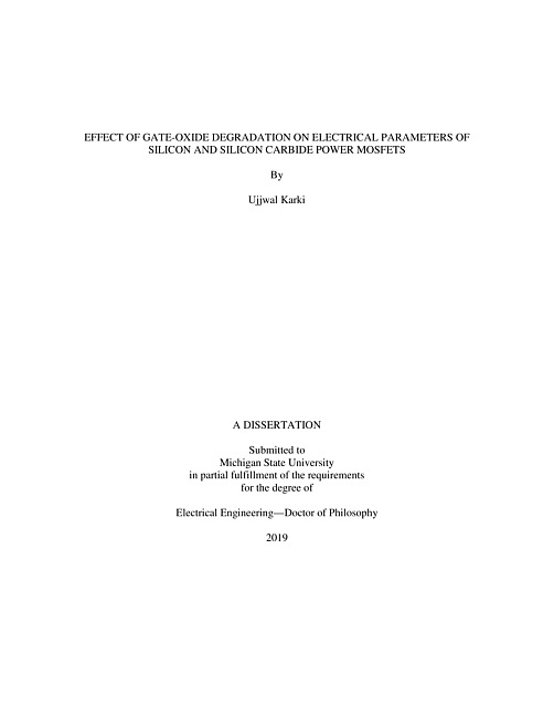 The power MOSFET (Metal Oxide Semiconductor Field Effect Transistor) is recognized as a crucial component of many power-electronic systems. The physical structure of both Silicon and Silicon Carbide power MOSFETs require an oxide layer as a dielectric material between their gate terminal and the semiconductor surface. The gate-oxide material, which is predominantly silicon dioxide, slowly degrades under the presence of an electric field. Over time, the degradation process significantly alters the electrical parameters of power MOSFETs, causing a negative impact on performance, reliability, and efficiency of power converters they are used in. In order to monitor this, the electrical parameters are utilized as precursors (or failure indicators) of gate-oxide degradation.Despite extensive investigation of gate-oxide degradation in Silicon (Si) power MOSFETs, the research literature has not attributed a consistent variation pattern to its gate-oxide degradation precursors. This dissertation investigates the variation pattern of existing precursors: a) threshold voltage, b) gate-plateau voltage, and c) on-resistance. While confirming the previously reported dip-and-rebound variation pattern of the threshold voltage and the gate-plateau voltage, a similar dip-and-rebound variation pattern is also identified in the on-resistance of Si power MOSFETs. Furthermore, a new online precursor of gate-oxide degradation— the gate-plateau time, is proposed and demonstrated to exhibit a similar dip-and-rebound variation pattern. The gate-plateau time is also shown to be the most sensitive online precursor for observing the rebound phenomenon. In addition, the analytical expressions are derived to correlate the effect of gate-oxide degradation with simultaneous dip-and-rebound variation pattern in all four precursors. The dip-and-rebound variation pattern is experimentally confirmed by inducing accelerated gate-oxide degradation in two different commercial Si power MOSFETs. While multiple electrical parameters have been identified as precursors for monitoring the gate-oxide degradation in Si MOSFETs, very few precursors have been proposed for Silicon Carbide (SiC) power MOSFETs. This dissertation proposes that in addition to the threshold voltage, the other online precursors identified for Si power MOSFETs: the gate-plateau voltage and the gate-plateau time, are also effective for monitoring the effect of gate-oxide degradation process in SiC power MOSFETs. Though the gate-oxide material is the same in both Si and SiC power MOSFETs, the effect of gate-oxide degradation on the variation pattern of electrical parameters is different. In contrast to the dip-and-rebound variation pattern of precursors in Si MOSFETs, the research literature has attributed a consistent linear-with-log-stress-time variation pattern to the threshold-voltage shift in SiC power MOSFETs. It is shown that both the gate-plateau voltage and the gate-plateau time increase in a linear-with-log-stress-time manner similar to the threshold voltage. The analytical expressions are derived to correlate the effect of gate-oxide degradation with simultaneous linear-with-log-stress-time variation pattern in all three online precursors. The increasing trend of precursors is experimentally confirmed by inducing accelerated gate-oxide degradation in both planar and trench-gate commercial SiC power MOSFETs under high voltage, high temperature, and hard-switching conditions.