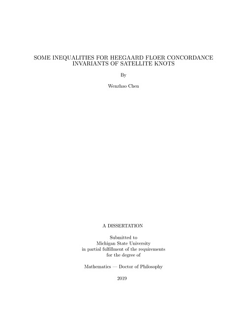 "This thesis studies the Ozsvath-Stipsicz-Szabo Upsilon-invariant and Rasmussen's 'local h-invariants' of satellite knots. The first main result is an inequality relating the Upsilon-invariant of a knot and that of its cable knots. This result generalizes previous work on the Ozsva-Szabo tau-invariant of cable knots due to Hedden and Van Cott. The second main result is a set of inequalities for the local h-invariants, showing their values of a satellite knot are constrained by those of the companion knot and pattern knot. This result generalizes crossing change inequalities and subadditivity. Both results are applied to study the smooth knot concordance group: we use iterated cabling operations to construct infinite-rank summands consisting of topologically slice knots; for any slice pattern with winding number greater than one, we show iterated satellite operations yield infinite-rank subgroups; we also show for a class of winding-number-one pattern which includes the Mazur pattern, the iterated satellite operations still yield infinite-rank subgroups."--Page ii.
