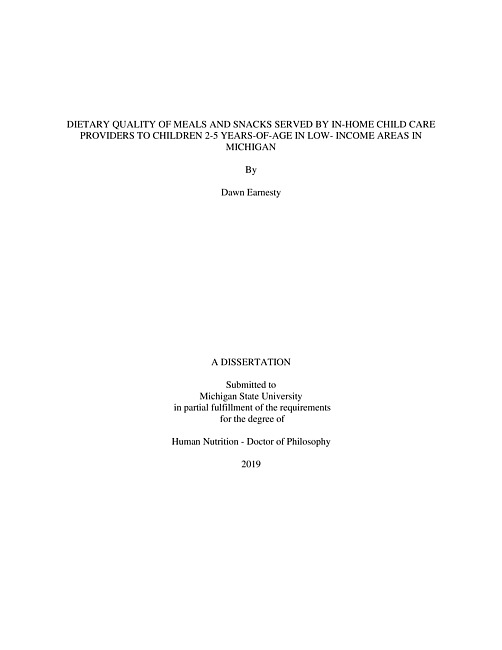 Dietary Quality of Meals and Snacks Served By In-Home Child Care Providers To Children 2-5 Years-of-Age in Low-Income Areas in Michigan