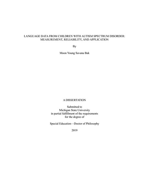 Language data from children with autism spectrum disorder : measurement, reliability, and application