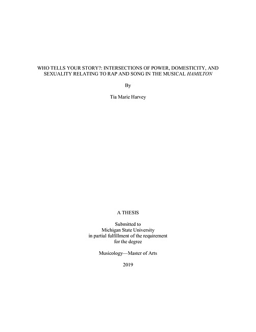 Who tells your story? : intersections of power, domesticity, and sexuality relating to rap and song in the musical Hamilton