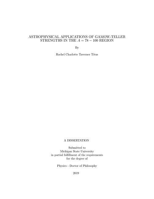 "Electron-captures on medium-heavy nuclei play an important role in the late evolution of core-collapse supernovae. Sensitivity studies of simulations of these supernovae indicate a region of nuclei near the N = 50 shell closure, just above doubly magic 78Ni, that have a significant effect on key characteristics of the evolution, such as the lepton fraction, electron fraction, entropy, stellar density and in-fall velocity. However, the vast majority of the nuclei in this region do not have dedicated weak-rate calculations; instead their rates are approximated via a method known for its overestimation of rates in heavy, neutron-rich nuclei. In order to guide the development of microphysical theoretical models, which yield Gamow-Teller strength distributions, from which more accurate electron-capture rates can be deduced, experimental data is needed to verify the validity of current models and to guide the development of improved models. Charge-exchange reactions at intermediate energies are an excellent tool with which to extract Gamow-Teller strength distributions model-independently, because of the well-established proportionality between the reaction cross section and the Gamow-Teller strength. In an attempt to obtain more accurate nuclear physics inputs for astrophysical simulations, an experimental campaign was performed at the National Superconducting Cyclotron Laboratory to study nuclei near the N = 50 shell closure. 86Kr lies immediately adjacent to the region of interest for core-collapse supernovae; it was probed using the (t,3He+gamma) with the S800 magnetic spectrometer and the gamma-detection array, GRETINA. The Gamow-Teller strength distribution, and the associated electron-capture rates, were extracted from the experimental data, to compare with theoretical models and to determine the validity of the current nuclear physics inputs for core-collapse supernova simulations."--Pages ii-iii.