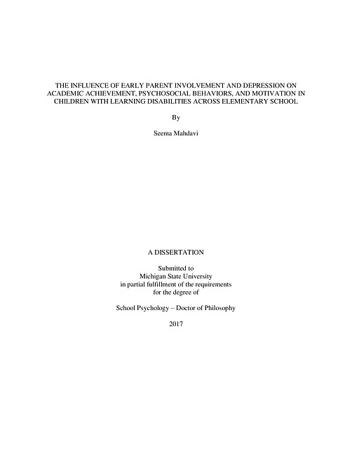 The influence of early parent involvement and depression on academic achievement, psychosocial behaviors, and motivation in children with learning disabilities across elementary school