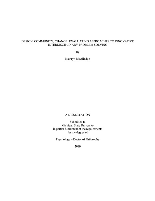 Design, community, change : evaluating approaches to innovative interdisciplinary problem solving
