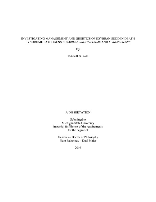Investigating management and genetics of soybean sudden death syndrome pathogens Fusarium virguliforme and F. brasiliense