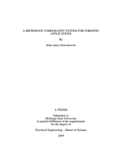 A healthy urban forest is important for both human health and environmental quality. There is currently a lack of technology that can analyze living trees in their natural environment without destroying them. This thesis presents a microwave tomography imaging system that is intended for use in several forestry applications. Recently, there has been an increased demand for imaging systems that do not use ionizing radiation but produce comparable accuracy and sensitivity to traditional imaging techniques. Microwave tomography is an emerging medical imaging research area that has rarely been used for anything besides human tissue imaging. The system described in this thesis was specifically designed for in vivo measurement of tree trunks and is one of the first of its kind. The system forms an image by using frequency domain sampling over a wide bandwidth (1-5 GHz) and a ring of antennas. Microstrip monopole antennas specifically designed for use in microwave tomography systems are used and their design is presented. The system also uses a microwave switch matrix to switch between active pairs of antennas. The design of this switch matrix and the controlling software is also presented. Lastly, this thesis discusses the use of time reversal image reconstruction and the signal processing involved to create an image. Measured results of simple targets and preliminary measurements of tree trunk samples are both included.