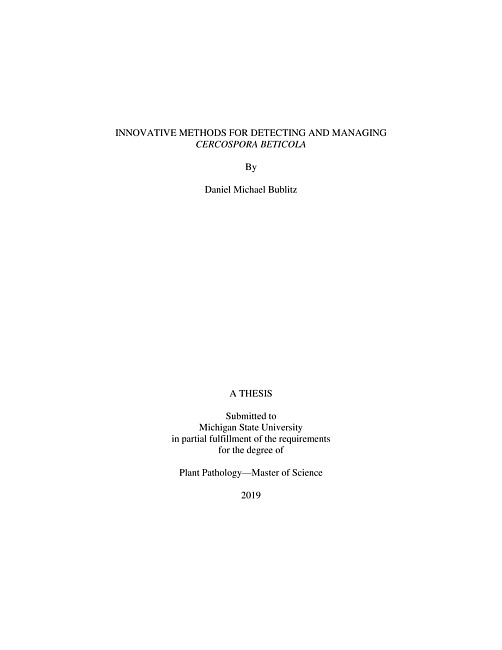 In many parts of the world, including the Great Lakes region of the United States, Cercospora leaf spot (CLS), caused by the fungal pathogen Cercospora beticola, is a major foliar disease of sugar beet (Beta vulgaris subsp. vulgaris). CLS management has become challenging in recent years due, in part, to an increase in fungicide resistance. If CLS is to be successfully managed in the future, more information about its epidemiology and alternative management strategies will be necessary. Thus, my first study employed sentinel beets to detect C. beticola spores in the field during the first half of the growing season. In both years of the study, spores were detected earlier than any previous reports. The spore levels detected fluctuated during both seasons and were correlated with factors such as rainfall and relative humidity. This information could be used to improve the timing of fungicide applications. The second study examined the potential of bicarbonate salts to be used as fungicides for C. beticola management. Ammonium, potassium, and sodium bicarbonate were tested in vitro. Each inhibited the growth of C. beticola, with ammonium bicarbonate causing complete growth inhibition at 1% (w/v). Sodium bicarbonate at 2% (w/v) significantly reduced CLS in the greenhouse compared to a control, so it might be useful in the field. The third study tested the effects of heat treatment in the form of a propane torch on C. beticola in vivo, with the goal of using such a technique to reduce inoculum levels of the fungus. Heat treatment of infected leaves completely inhibited sporulation and decreased fungal viability by over 80%. The new insights and methods developed from this research have the potential to aid in future CLS management.