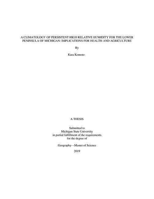 A climatology of persistent high relative humidity for the lower peninsula of Michigan : implications for health and agriculture