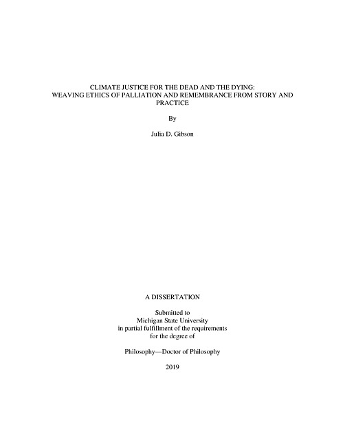 Climate justice for the dead and the dying : weaving ethics of palliation and remembrance from story and practice
