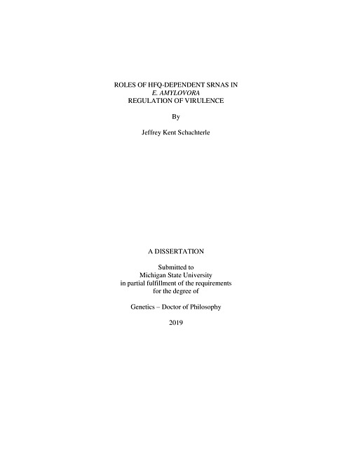 Roles of hfq-dependent srnas in e. amylovora regulation of virulence