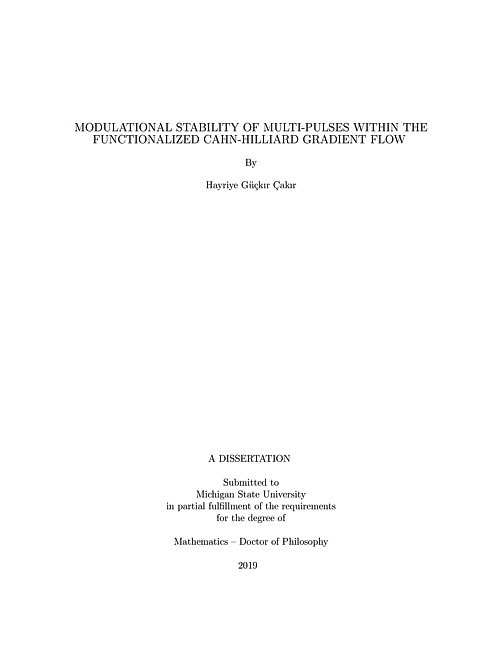The Functionalized Cahn-Hilliard (FCH) energy is a model describing the interfacial energy in a phase separated mixture of amphiphilic molecules and a solvent. On a bounded domain in R, the Euler-Lagrange equation for the mass constrained Functionalized Cahn-Hilliard(FCH) free energy with zero functionalization terms is derived and a large family of multi-pulse critical points is constructed. We show that the FCH energy with no functiona-lization terms subject to a mass constraint has global minimizers over a variety of admissible sets. We introduce a multi-pulse ansatz as the extensions of the periodic multi-pulse critical points to R and establish the H^2-coercivity of the second variation of the energy about multi-pulse ansatz. Modulational stability and the dynamic evolution of the multi-pulse ansatz with respect to the Pi_0-gradient flow are also addressed.