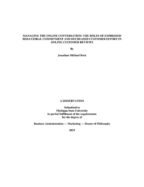 Managing the Online Conversation : The Roles of Expressed Behavioral Commitment and Decreased Customer Effort in Online Customer Reviews