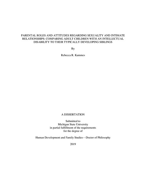 Parental roles and attitudes regarding sexuality and intimate relationships : comparing adult children with an intellectual disability to their typically developing siblings