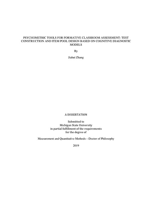 Psychometric tools for formative classroom assessment : test construction and item pool design based on cognitive diagnostic models