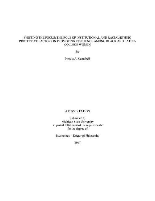 Shifting the focus : the role of institutional and racial/ethnic protective factors in promoting resilience among Black and Latina college women