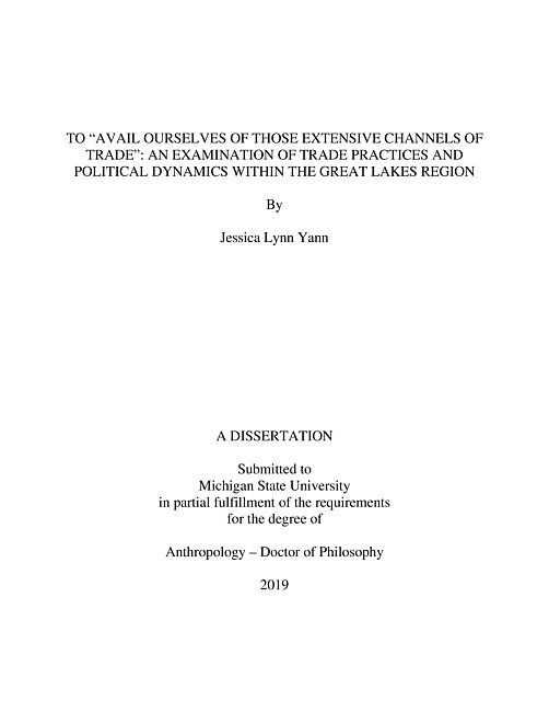 TO “AVAIL OURSELVES OF THOSE EXTENSIVE CHANNELS OF TRADE” : AN EXAMINATION OF TRADE PRACTICES AND POLITICAL DYNAMICS WITHIN THE GREAT LAKES REGION