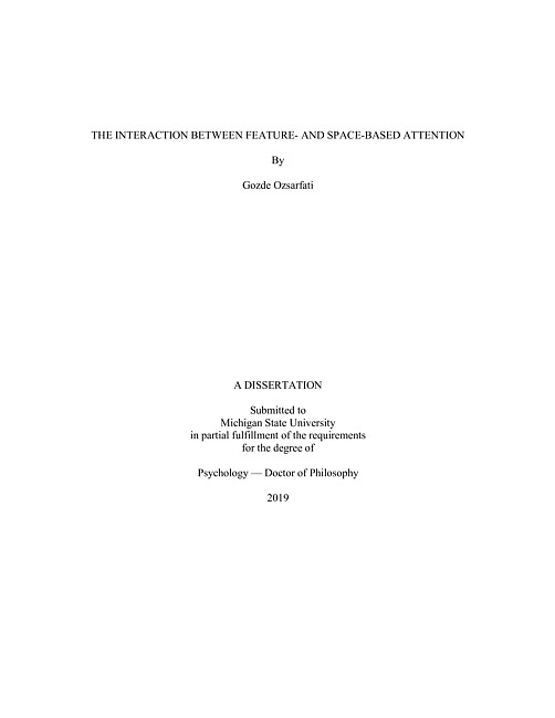 Although the separate effects of feature- and space-based attention are relatively well established, the conjoint effects of attending to both a location and a feature are under-investigated. I analyzed the literature and extracted three approaches that explain such conjoint effects, namely the independence, sensory gating, and boosting approaches. The three approaches have substantial supports and shortcomings, and the current study will investigate which of the three approaches provide the best prediction of behavioral performance. I conducted two experiments to investigate whether the interplay between feature- and space-based attention varied as a function of the elapsed time between the cue and the target onset. A space-feature combination cue directed attention to a target on which participants discriminated small changes in color saturation. Both the spatial and feature cues were partially valid, making it possible to assess the cueing effect. The time difference between the cue and the saturation change onsets was manipulated in fine steps. Experiment 1 showed that space- and feature-based attention had an interactive effect on performance, such that feature-based attention did not influence performance outside the focus of space-based attention regardless of the temporal asynchrony between the cue and target onset. Experiment 2 was conducted to determine which of the three approaches provided the best account for the interaction pattern by adding a spatially neutral condition. It showed that feature- and space-based attention influenced performance, yet feature-based attention could not influence the performance outside the focus of spatial attention regardless of the temporal asynchrony between the cue and target onset. Moreover, the effectiveness of feature-based attention was equivalent at the spatially valid and neutral locations. In conclusion, the findings resemble with the predictions of the sensory gating approach. While feature-based attention could operate at the attended location or under diffused spatial attention equally well, its effectiveness diminished outside the focus of spatial attention. Moreover, the spatial filter imposed on feature-based attention is more permeable than originally proposed by the sensory gating approach. Lastly, feature-based attention does not fully spread to an unattended location regardless of the time difference between the cue and target onsets.