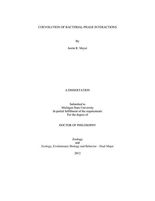 Bacteria and their viruses, phage, are the most abundant and genetically diverse group of organisms on earth. Given their prevalence, it is no wonder that recent studies have found their interactions important for ecosystem function, as well as the health of humans. Unfortunately, because of technical challenges with studying microbes, some of the most basic questions on their interactions, such as who infects whom, and how their relationships evolved in the first place, remain unanswered. Here I report six studies on bacterial-phage interactions, each focused on understanding their pattern and the underlying biophysical, ecological, and evolutionary processes that shape them. To do this, I tested a number of hypotheses using laboratory experiments and analyses of natural microbial diversity. First, I tested whether Esherichia coli cultured without phage would counter-intuitively evolve new interactions with phage. Typically bacterial traits responsible for phage resistance have pleiotropic consequences on growth, therefore as a side-effect of adapting to an abiotic environment, bacteria may also evolve to become more or less vulnerable to their parasites. After 45,000 generations of laboratory culturing without phage, E. coli gained resistance to lambda phage, gained sensitivity to a mutant T6 phage, and remained resistant to wild type T6. Each response was explained by understanding the pleiotropic costs or benefits of mutations that confer resistance. Because of pleiotropy, interactions may even evolve in the absence of one player.For the rest of my studies I examined how interactions evolve when host and parasite co-occur. First, I found that when E. coli and phage lambda are cocultured, E. coli evolves resistance by reducing the number of phage genotypes that can infect it, whereas, lambda evolves to increase the number of bacterial genotypes it can infect. This antagonism produces a interaction matrix with a nested form where less derived host-ranges fall one within another. To determine whether this nested pattern is an artifact of the labratory environment, or if the pattern is general to natural communities, I performed a metaanalysis on already published phage-bacterial interaction matrices. The majority of networks were significantly nested (28 of 38). Lastly, I examined the molecular basis of E. coli resistance to lambda and found that resistance often evolves through mutations in E. coli's lamB, the gene for the phage receptor. Also, the strength of resistance is correlated with how the mutation perturbs the orientation specific features of the protein structure, primarily loop four which extends out of the cell membrane. For the final two chapters, I studied whether lambda could evolve to target a novel receptor and the evolutionary consequences of such an innovation. Under particular laboratory conditions, E. coli evolves resistance by down-regulating LamB, which sets the stage for lambda to evolve the necessary mutations to exploit a new protein receptor. When allowed to coevolve under this condition, lambda evolved to exploit another outer-membrane protein, OmpF. This new function is the result of a particular combination of four mutations in J, the gene for the protein ligand lambda uses to bind to its host. Once lambda evolves this novel interaction, an evolutionary arms-race begins that drives rapid diversification of the bacteria and phage. Overall, my studies show that coevolution between bacteria and phage, whether it be in the lab or in nature, produces nested interactions matrices. Secondly, antagonistic coevolution is a creative process able to generate new genotypes of host and parasite and promote the evolution of novel function. Lastly, costs for resistance have many important effects, from determining whether resistance will evolve or be lost, to the generation of diversity.