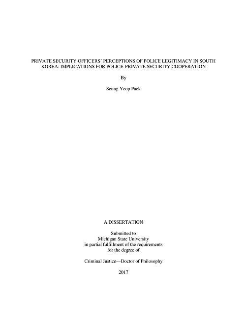 Private security officers' perceptions of police legitimacy in South Korea : implications for police-private security cooperation