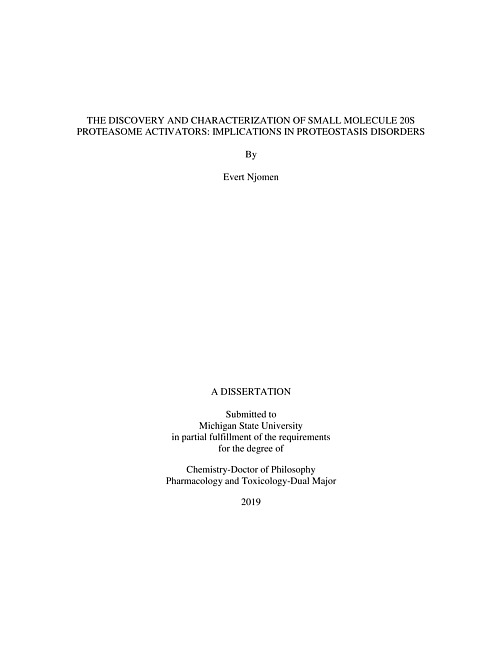 The discovery and characterization of small molecule 20s proteasome activators : implications in proteostasis disorders