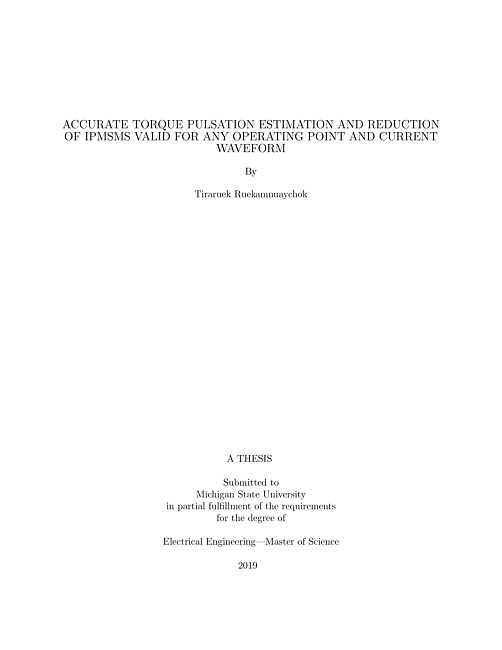 In this thesis, a method to estimate the torque pulsation of IPMSMs is proposed. The method is based on an analytical torque equation of IPMSMs derived by using the concepts of energy and co-energy of a magnetic circuit. This method is valid and accurate for any operating point, including that under heavy magnetic saturation, and for any arbitrary current waveform. Also, by using the proposed equation, a method to reduce the torque pulsation is proposed. Simulation and experimental results show that the proposed methods, for both estimation and reduction, are valid, accurate and effective.