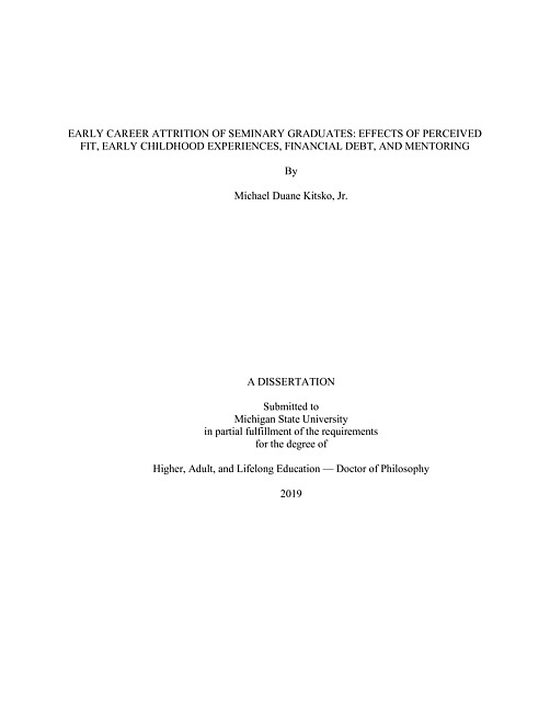 Early career attrition of seminary graduates : effects of perceived fit, early childhood experiences, financial debt, and mentoring