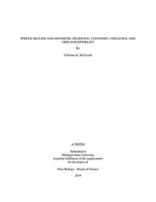 Spruce decline and diaporthe : incidence, taxonomy, virulence, and tree susceptibility