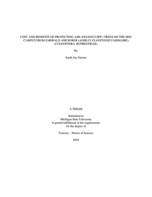 Cost and benefits of protecting ash (Fraxinus spp.) trees on the MSU campus from emerald ash borer (Agrilus planipennis Fairmaire) (Coleoptera : Buprestidae