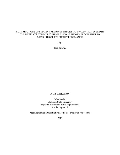 Contributions of student response theory to evaluation systems : three essays extending item response theory procedures to measures of teacher performance