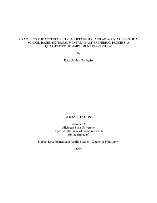 Examining the acceptability, adoptability, and appropriateness of a school-based external mental health referral process : a qualitative pre-implementation study