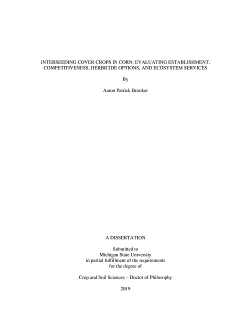Interseeding cover crops in corn : evaluating establishment, competitiveness, herbicide options, and ecosystem services