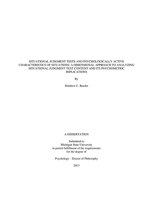 Situational judgment tests and psychologically active characteristics of situations : a dimensional approach to analyzing situational judgment test content and its psychometric implications